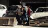 Plötzlich eingestürzt Arbeiter und Autos von Loch in Strasse verschluckt