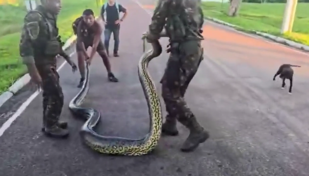 Dies ist der Moment, als Soldaten der brasilianischen Armee einen Hund retteten, nachdem dieser in einem Militärstützpunkt von einer drei Meter langen Anakonda angegriffen und eingeschnürt worden war.