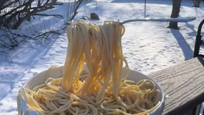 Spaghetti gefrieren in eiskalter Luft