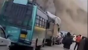 Felsen stürzen auf volle Bergstrasse in Indien