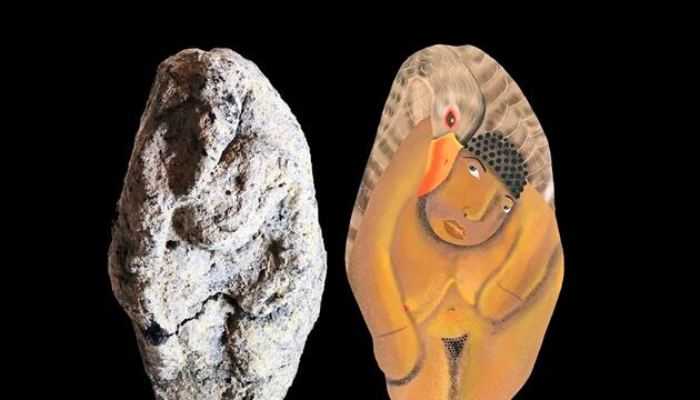 Eine filigrane Tonskulptur mit Frau-und-Gans-Motiv offenbart frühe spirituelle Vorstellungen.