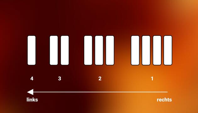 Pins in einer Reihe von links nach rechts symbolisieren die Zahlen 1 bis 4. Legen Sie nur einen Pin um, damit sich die Reihenfolge von rechts nach links ändert.
