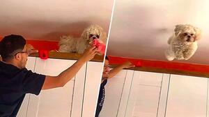 Hund soll Stofftier von Schrank holen – doch dann überrascht er sein Herrchen