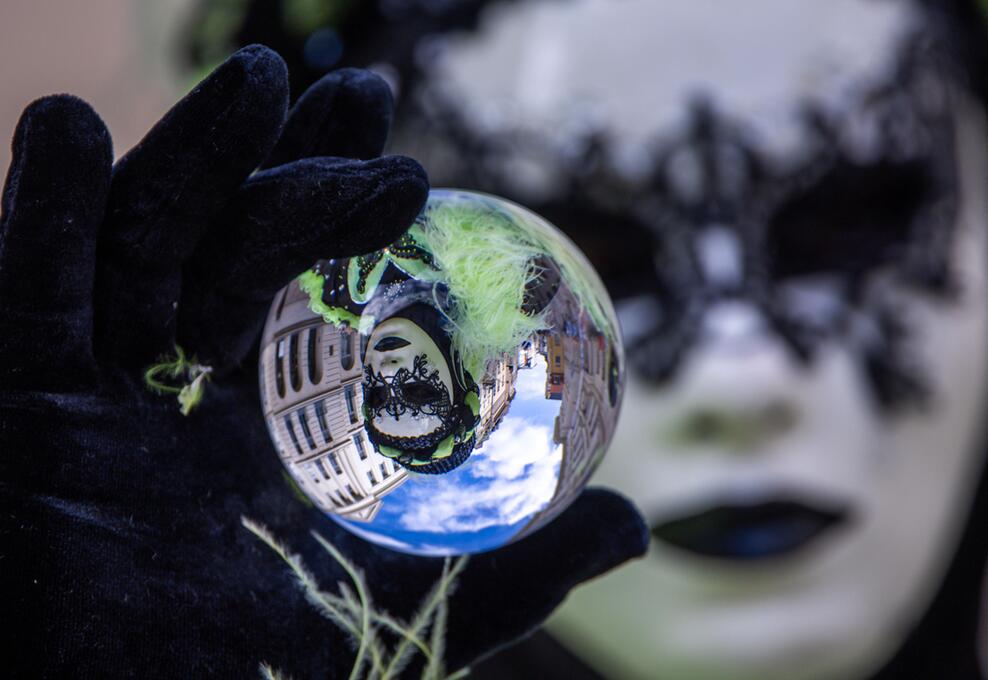 Zwei Personen stehen vor dem bunt beleuchteten Berliner Dom. Im Hintergrund ist der Fernsehturm zu sehen. Das 21. Festival of Lights steht unter dem Motto: "Let's shine together".