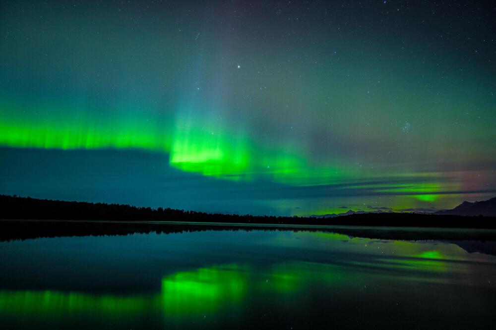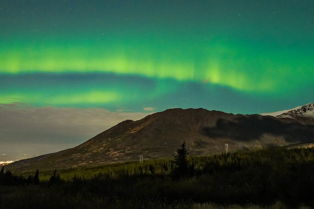 Die Nordlichter (Aurora Borealis) erleuchteten den Nachthimmel über Anchorage in Alaska.