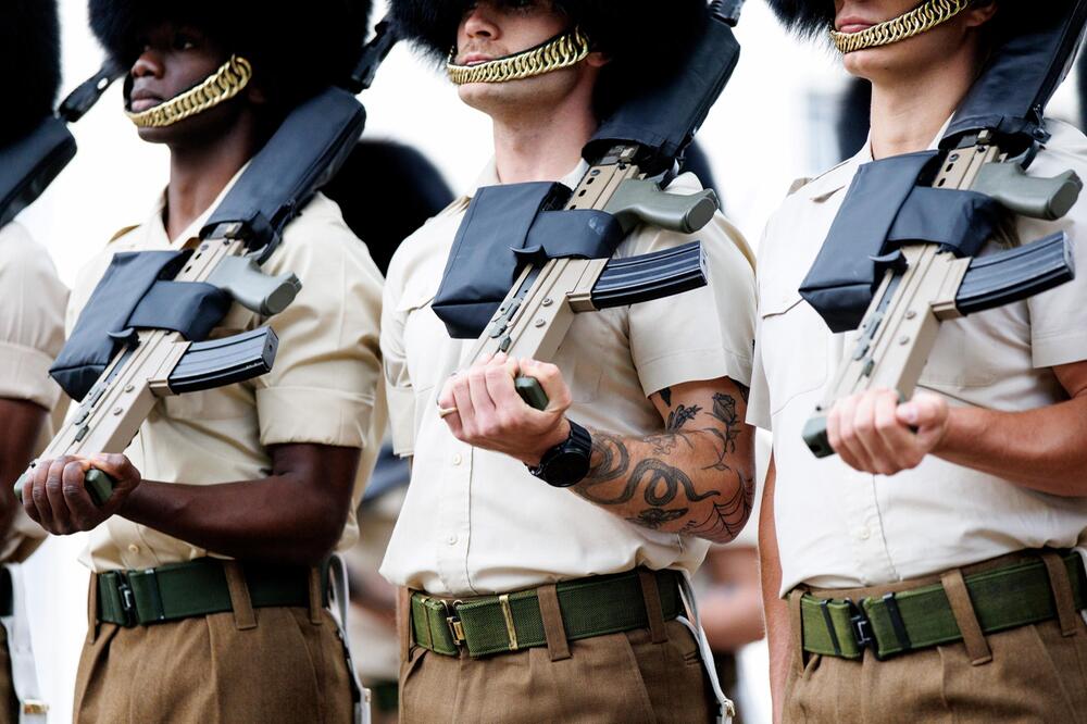 Mitglieder der indonesischen Spezialeinheiten (Kopassus) bereiten sich auf eine Zeremonie zum 80. Jahrestag der indonesischen Streitkräfte am Nationaldenkmal (Monas) in Jakarta vor.
