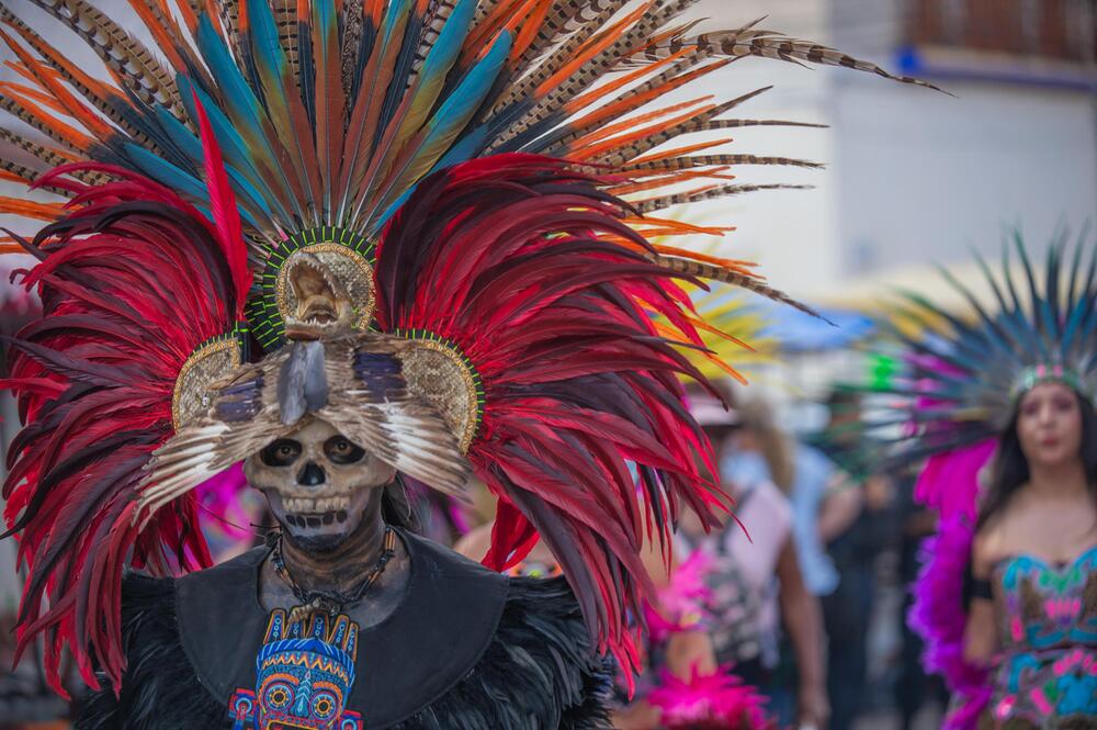 Eine Brustkrebsüberlebende nimmt an einer Modenschau im Cabañas-Museum in Guadalajara teil. Zahlreiche Überlebende präsentierten sich mit Körperbemalung, um Betroffenen Hoffnung und Würde zu vermitteln.