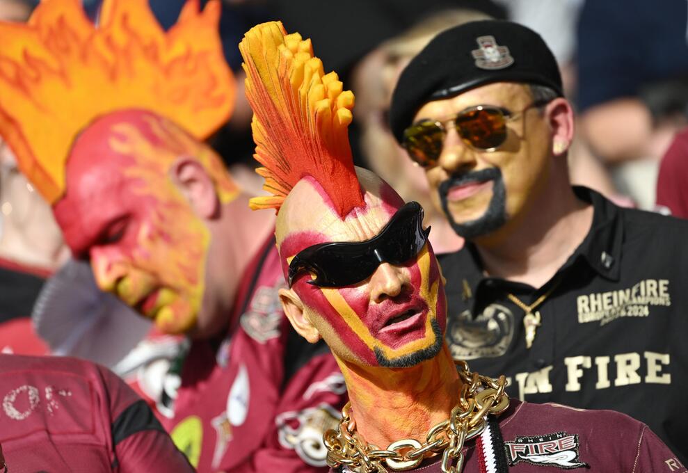 Beim Finale der Play-off-Runde der Profiliga ELF zwischen den Stuttgart Surge und den Vienna Vikings in der MHP Arena feuern verkleidete Fans die Teams von den Tribünen aus an.