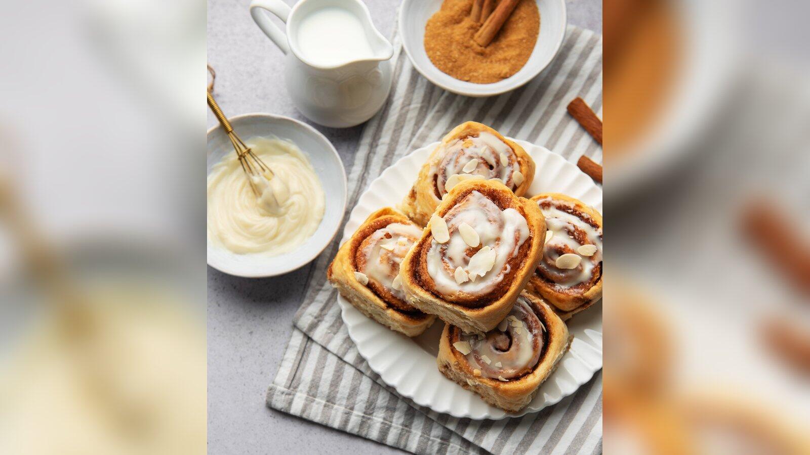 - Die Zimtschnecken 20-25 Minuten goldbraun backen. Aus dem Ofen nehmen und 10 Minuten abkühlen lassen.