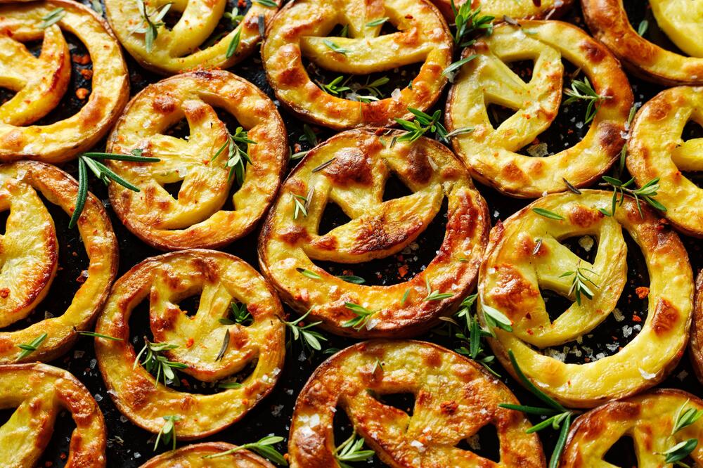 Auch lecker gewürztes Ofengemüse passt lustigerweise auf ein Halloween-Buffet. Dafür nutzen Sie passende Ausstechformen wie Besen, Spinnen, Kürbisse, Gesichter oder Hexenhüte und stechen keinen Teig, sondern Gemüsescheiben aus. Schneiden Sie hierfür Rote Bete, dicke Kartoffeln, Möhren oder anderes passendes Wurzelgemüse in Scheiben.