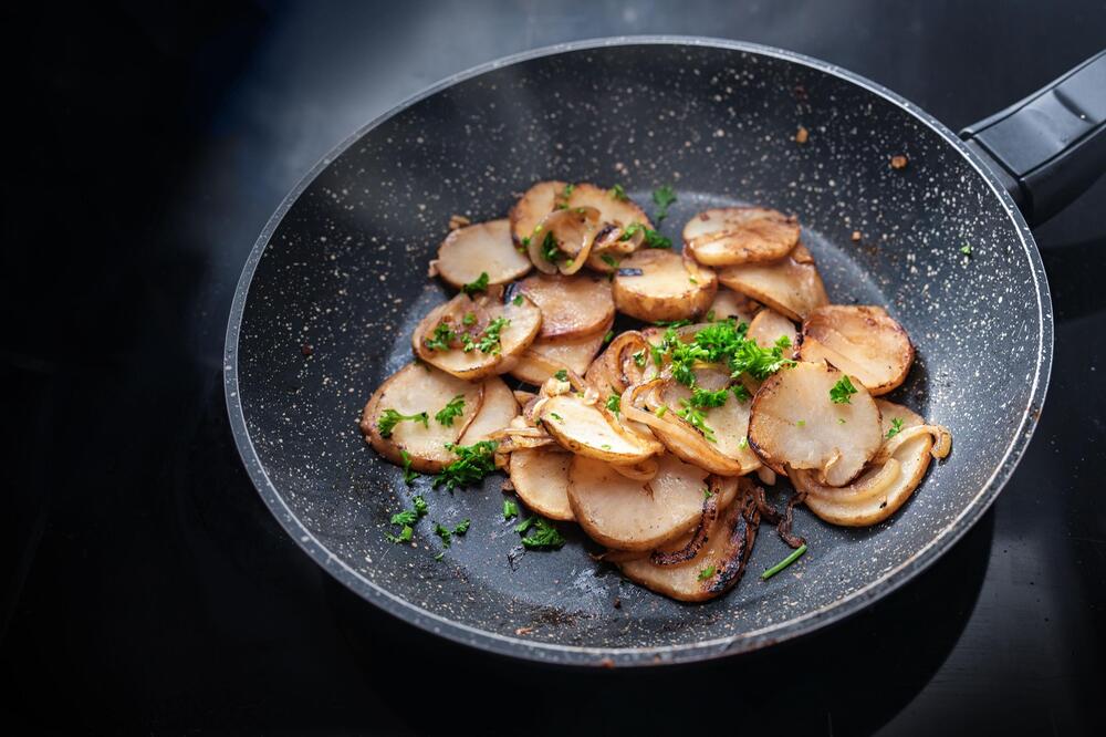 Kochen Sie für vier Personen 900 Gramm Süsskartoffeln in Wasser und schneiden Sie eine Zwiebel, einen Bund Frühlingszwiebeln und zwei Knoblauchzehen klein. Danach 500 Gramm veganes Hack, Sojageschnetzeltes oder rote Linsen zusammen mit Zwiebeln, Knoblauch, 300 Gramm klein geschnittenen Champignons und 300 Gramm Walnussbruch in einer Pfanne anbraten. Mit 100 Millilitern Gemüsebrühe ablöschen, einen Esslöffel Senf einrühren, mit Salz und Pfeffer würzen.