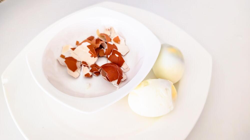Eierschalen kleben oft am Teller fest und das blosse Auskippen reicht manchmal nicht, um sie loszuwerden. Wer sich nicht die Mühe macht, auch die letzten Stückchen per Hand in den Abfalleimer zu streifen, nimmt in Kauf, dass die Schalen in der Spüle und letztendlich in den Abflussrohren landen. Genauso wie andere Feststoffe können sie sich dort ablagern und Probleme bereiten. Essensreste sollte man daher immer im Müll entsorgen.