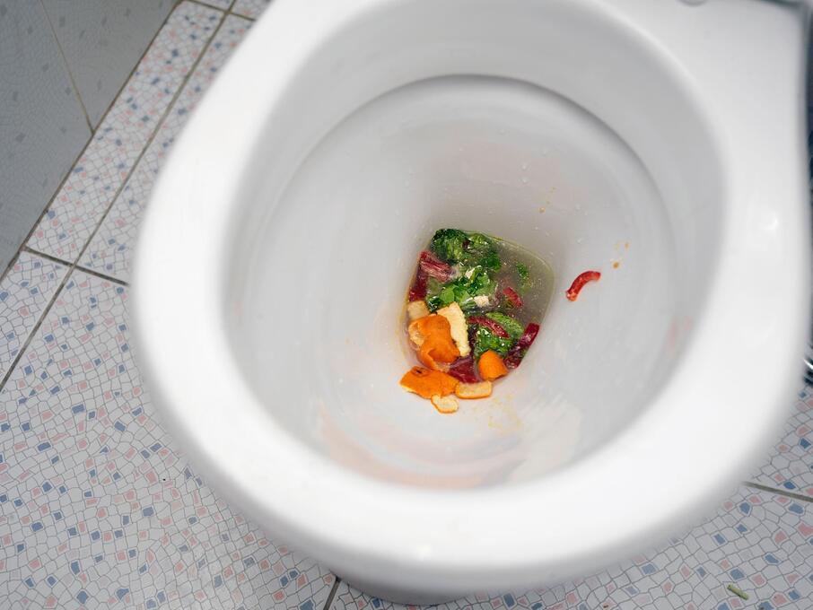 Manchmal werden Essensreste, Öle, Sossen und Salatdressings zwar nicht in der Spüle entsorgt, dafür aber in der Toilette. Das mag zwar nicht ganz so schnell zu Verstopfungen führen wie im Waschbecken, ist aber dennoch ein Tabu. Speisereste erschweren die Reinigung des Abwassers und bilden Gerüche.