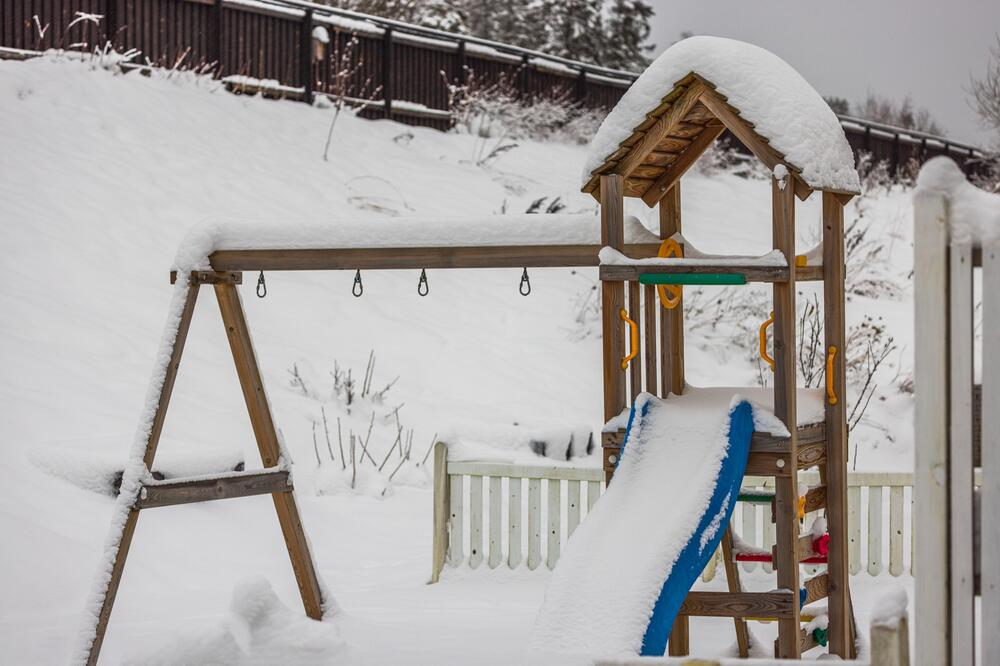 Wer Spielgeräte im Garten hat, sollte sich vor dem Winter darum kümmern, dass frostempfindliches Material an einen geschützten Ort gebracht wird. Schaukeln, Turnringe und andere Spielgeräte an Seilen sollten abgenommen werden.