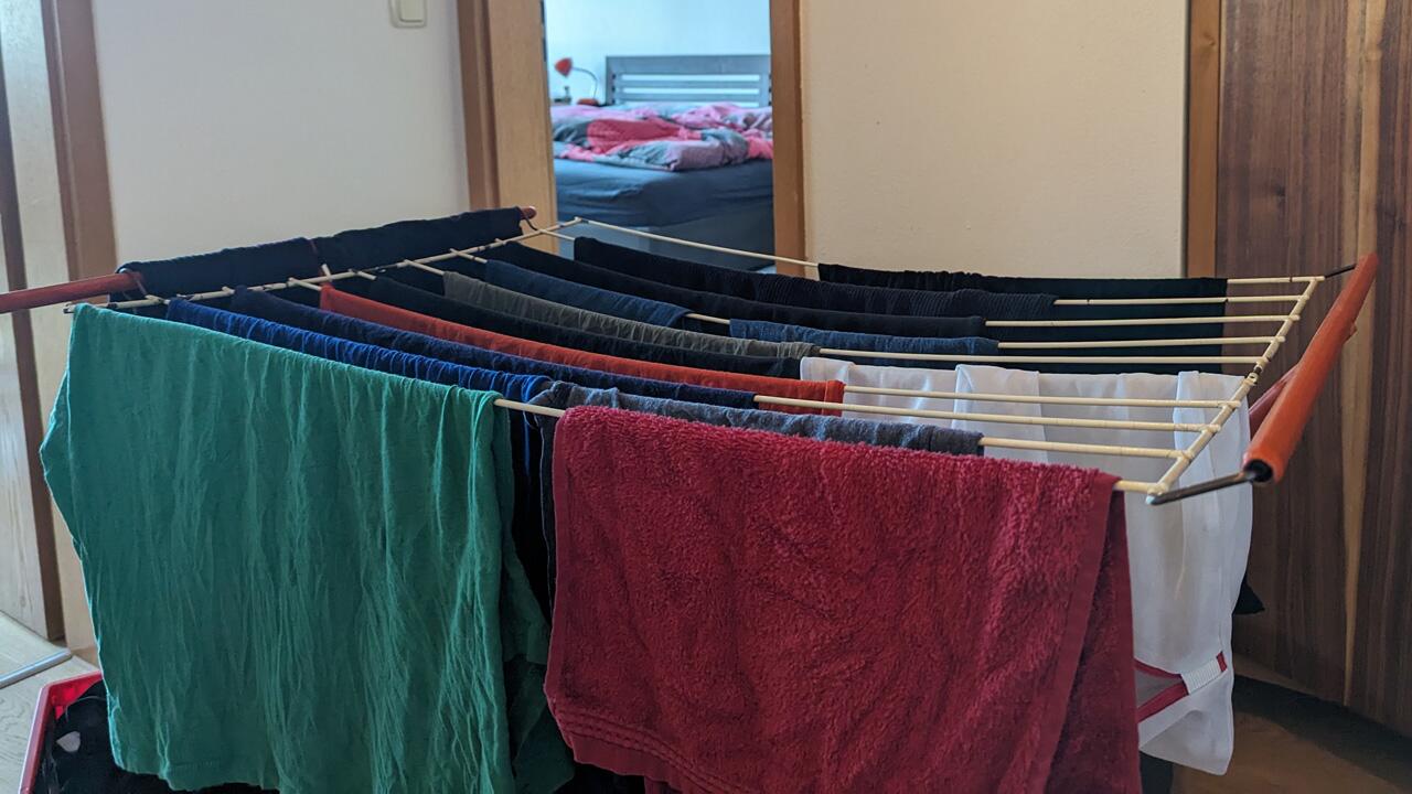 Wer keinen Wäschekeller oder Wäschetrockner hat, muss seine Wäsche zwangsläufig in der Wohnung trocknen. Im Prinzip funktioniert das problemlos – im Winter ist regelmässiges Lüften besonders wichtig, damit kein Schimmel entsteht.