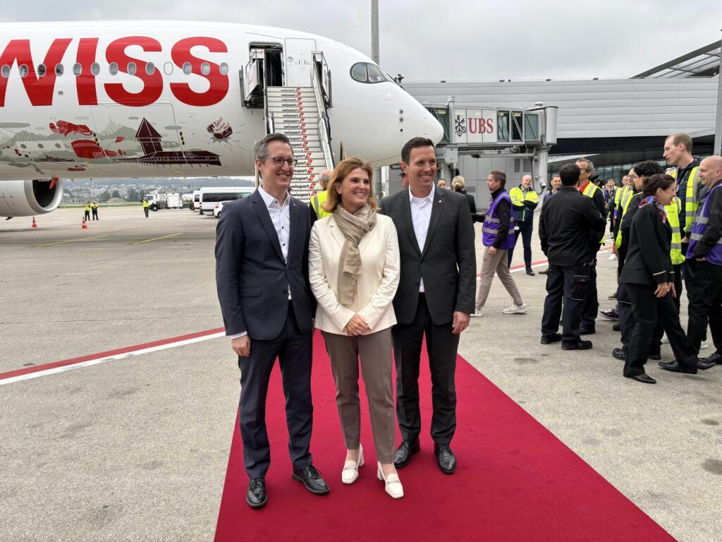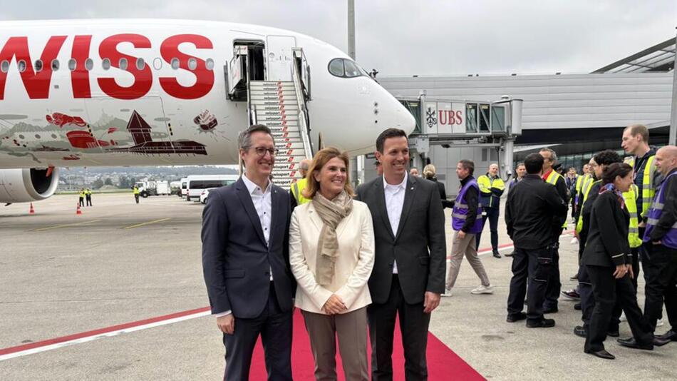 Die Swiss hat am Donnerstagnachmittag ihren ersten neuen Langstreckenflieger A350 feierlich in Empfang genommen. Mit der Maschine will die Schweizer Fluggesellschaft mit ihrem Langstreckenangebot in höhere Sphären aufsteigen.