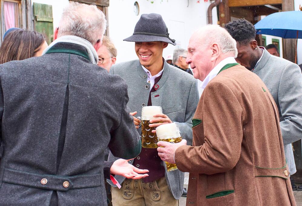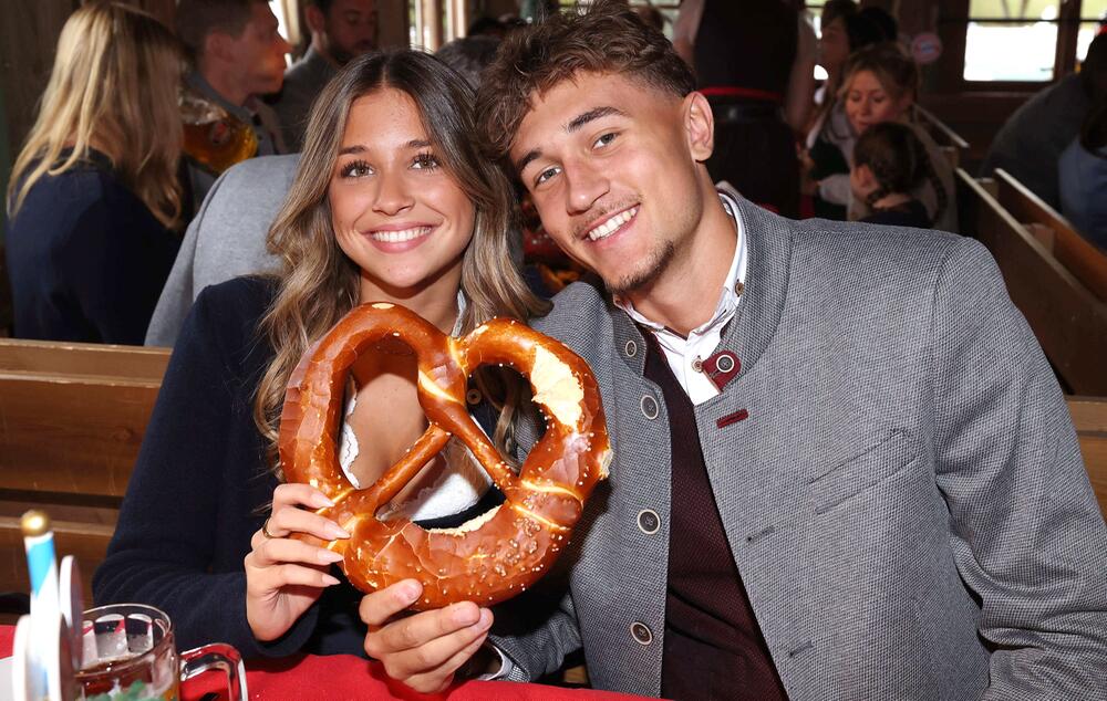 Die Bayern marschieren durch die Bundesliga und feiern am letzten Wiesn-Tag gemeinsam auf dem Oktoberfest. Bayern-Neuzugang Tom Bischof zeigte sich dabei erstmals öffentlich mit seiner Freundin und legte damit den wohl süssesten Pärchen-Auftritt hin. Die Bilder vom Wiesn-Besuch der Bayern.