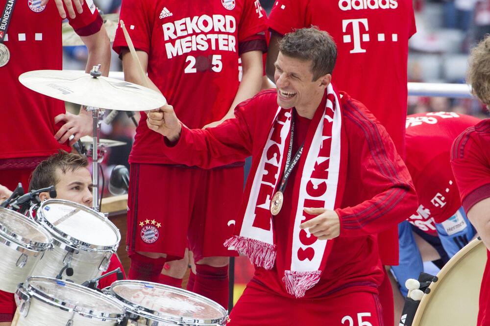 2013 endet eine Durststrecke für den FC Bayern und Thomas Müller, der sich in den letzten beiden Jahren zum unumstrittenen Publikumsliebling entwickelt hat: Die Bayern werden nach zwei schalenlosen Jahren wieder Deutscher Meister und Müller steuert 13 Tore und 13 Torvorlagen bei.
