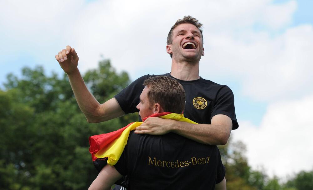 Im Juli 2014 erlebt Thomas Müller wohl das Highlight seiner Karriere: Mit der deutschen Nationalmannschaft wird er Weltmeister in Brasilien. Müller spielt ein überragendes Turnier, steht bei jeder Partie von Beginn an auf dem Platz und steuert fünf Tore und fünf Vorlagen zu dem Triumph bei und wird von den Fans und seinen Mitspielern entsprechend gefeiert.