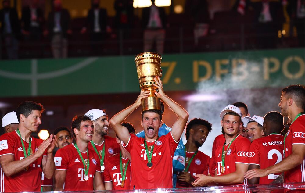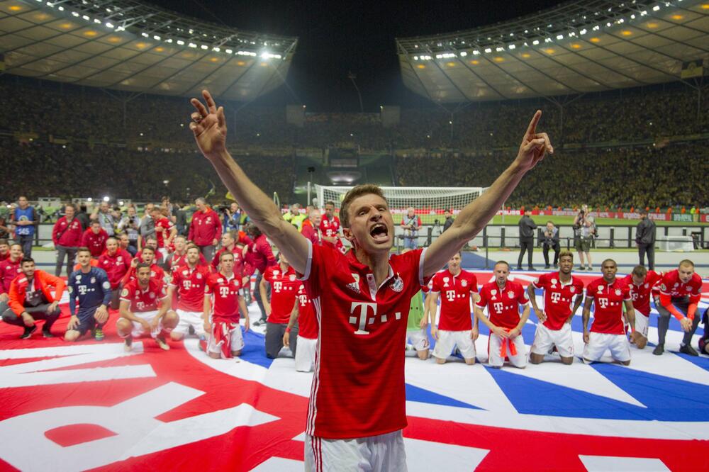 Im DFB-Pokalfinale besiegen die Bayern Borussia Dortmund mit 2:0. Torschütze zum 2:0 in der 120. Minute der Verlängerung: Thomas Müller.