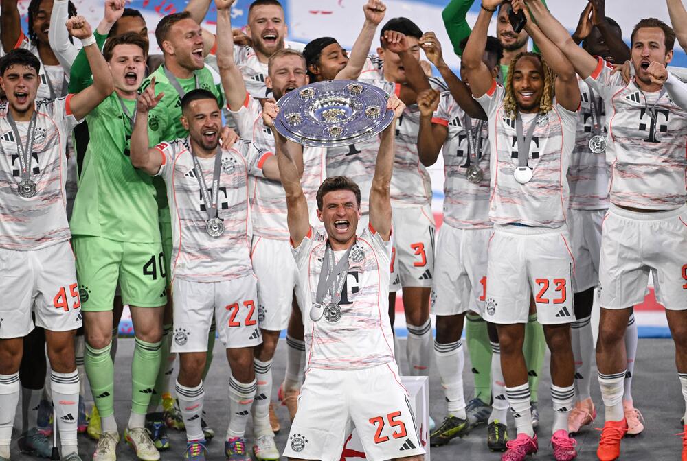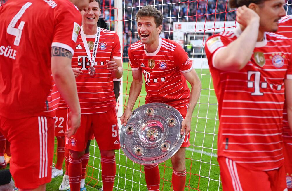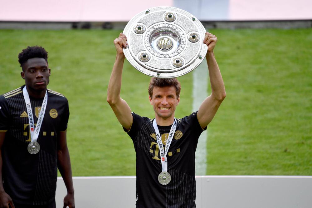 Der FC Bayern feiert 2022 die neunte Meisterschaft in Folge und Thomas Müller seinen 30. Titel. Mit seiner insgesamt 11. Meisterschaft wird er damit ausserdem zum alleinigen Rekordhalter im Verein.