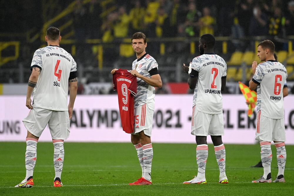 Zum Gewinn des Supercups 2021 gegen den BVB (3:1) trägt Müller mal wieder ein Tor bei. Noch vor dem Spiel erinnert er an die kurz vor dem Spiel verstorbene Stürmer-Legende Gerd Müller.