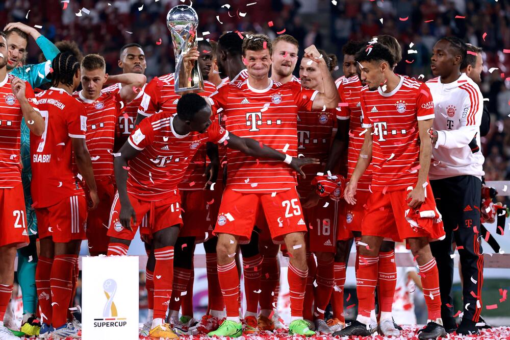Auch den Supercup gewinnen die Bayern 2022. Sowohl die Bayern als auch Gegner Leipzig gehen mit offenen Visieren in das Spiel. Am Ende steht es 5:3 für die Bayern.