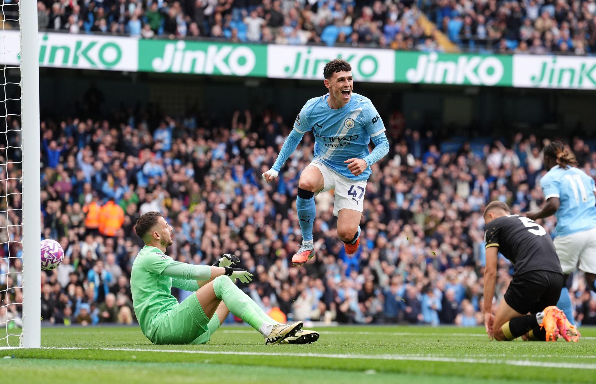 Phil Foden traf beim Erfolg von Manchester City über den FC Burnley. © dpa / Martin Rickett/PA Wire/dpa