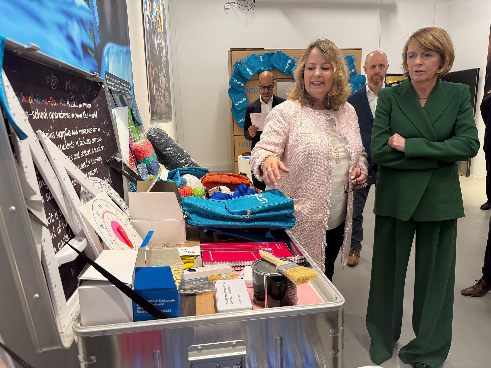Immer weniger Hilfe erreicht Kinder in Not. Die deutsche First Lady Elke Büdenbender besucht ein Warenlager von UNICEF, um zu verstehen, wie die Unterstützung aus Europa koordiniert wird.