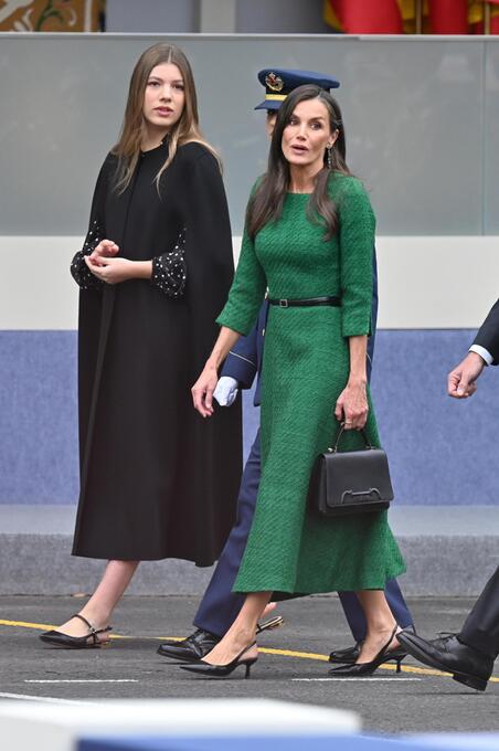 ... ein elegantes, schwarzes Cape trug. Mama Letizia entschied sich dieses Jahr für ein grünes Tweedkleid.