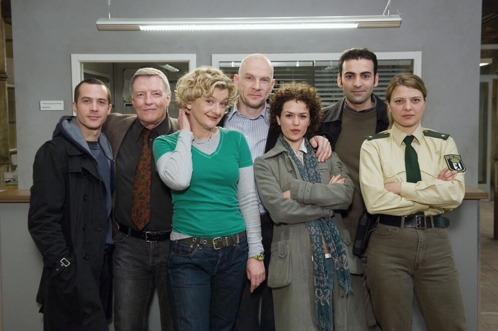 Und so sah der Cast der ZDF-Serie "KDD -Kriminaldauerdienst" damals aus (v.l.): Barnaby Metschurat, Manfred Zapatka, Saskia Vester, Götz Schubert, Melika Foroutan, Billey Demirtas und Jördis Triebel ermittelten und lebten unter ständigem Hochdruck in Berlin-Kreuzberg.
