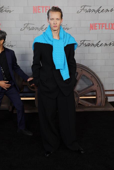 ... Felix Kammerer. Der deutsche Schauspieler bewies ein Händchen für Stil und Farbe und warf sich lässig einen leuchtend blauen Pullover um die Schultern.