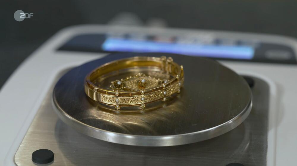 Für Brosche und Armreif mit kleinen Perlen wünscht sich der Verkäufer zwischen 600 und 800 Euro. Expertin Horz schätzt den Wert sogar auf 1.200 Euro. David Suppes zahlt letztlich 1.050 Euro.