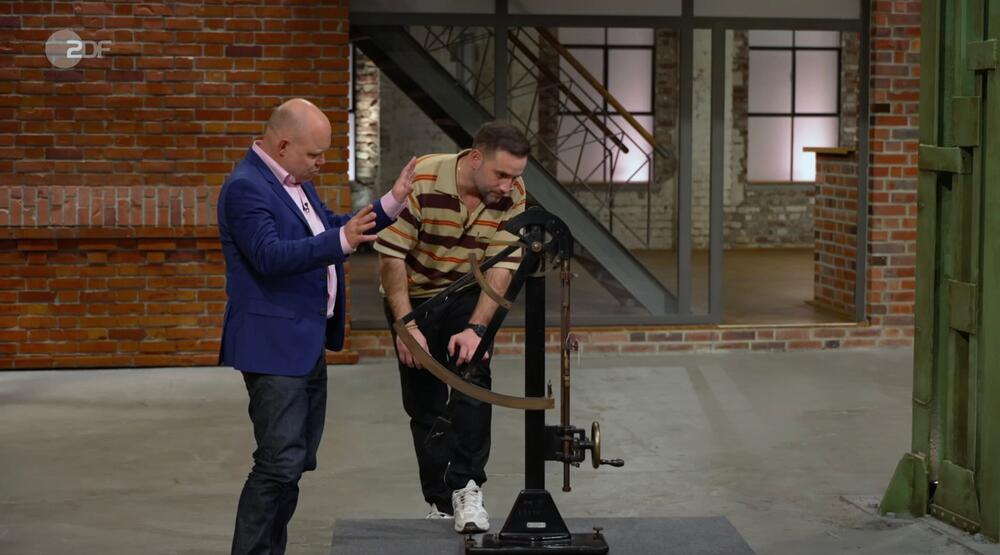 Zumindest Experte Deutschmanek findet die Apparatur "wunderschön" und setzt gleich zum Test an. Dafür hat er einen Papierstreifen eingelegt und dreht an der Kurbel. Lichter ist noch nicht wirklich begeistert und nimmt Deutschmanek sogar auf den Arm. "Wow, er dreht schön. Selten sowas Schönes drehen sehen", kommentiert der Moderator ironisch.