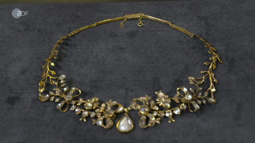 Maren und Silke aus Adelheidsdorf und Gehrden wollen ein Collier mit Diamantrosen (4 bis 5 Karat) verkaufen, das Patrick Lessmann auf 585er-Gold testet - denn ein Stempel, der den Feingehalt angibt, ist nicht vorhanden. Der Experte datiert den Schmuck aus England um 1840/50.