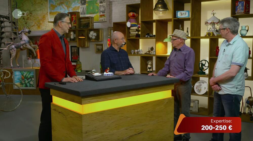 Für die beiden Rauchgefässe wünscht sich der Verkäufer 160 bis 200 Euro. Doch Experte Kümmel taxiert 200 bis 250 Euro. Denn besonders der Aschenbecher der Schuhputzmarke Erdal gilt als begehrtes Sammlerstück: selten, gesucht und entsprechend wertvoll. Allein das Objekt mit dem Frosch ist schon bis zu 200 Euro wert.