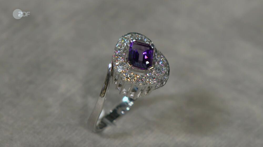 Ursula und Till aus Freiburg wollen einen Ring aus 750er-Weissgold mit Amethyst (1,65 Karat) und Brillantbesatz (1 Karat) verkaufen, den Patrick Lessmann in den 1970er-Jahren datiert.