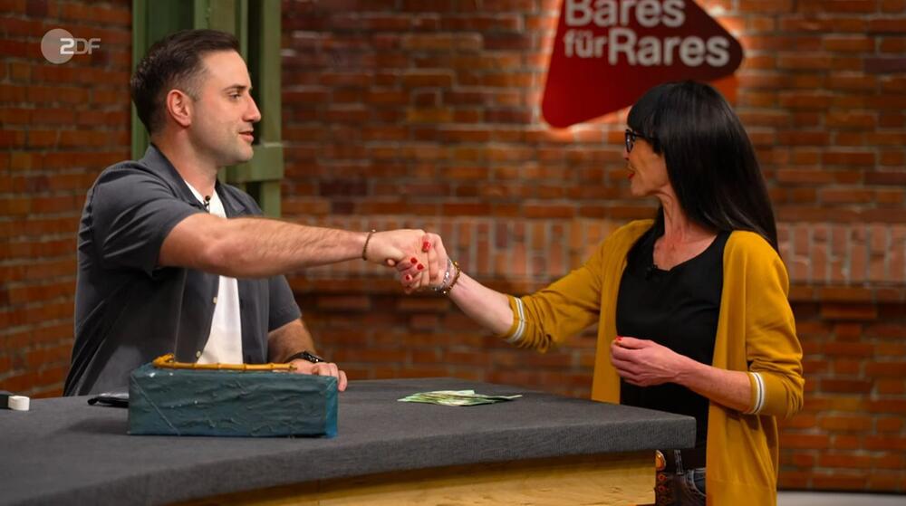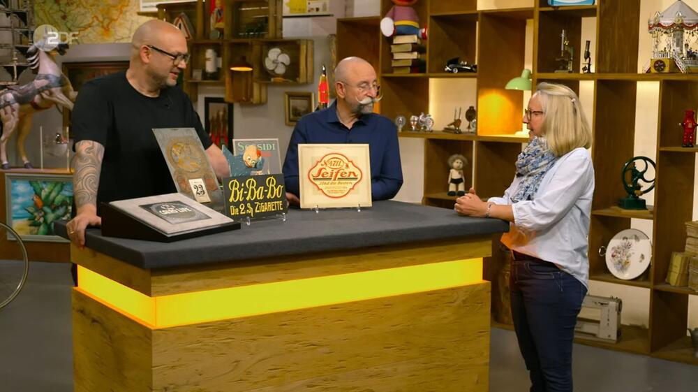Verkäuferin Julia freut sich vor allem auf die Erfahrung, bei "Bares für Rares" dabei zu sein: "Meine Erwartungen sind schon übertroffen, da ich hier sein darf." Deutschmanek ist begeistert von ihrem Mitbringsel: "Schöne alte Werbung", lobt er die kleine Sammlung. "Das scheint wirklich alt zu sein", überlegt Lichter derweil.