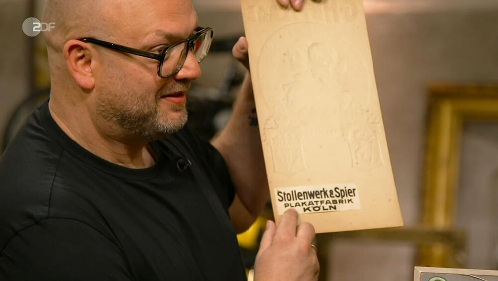Die Werbungen kommen aus dem Nachlass ihrer Schwiegereltern, erklärt Julia. Der Hersteller der Plakate, Stollenwerk, sei der Urgrossvater ihres Mannes gewesen. "Die waren damals einer der namhaften Plakat-Hersteller hier im Kreis Köln", weiss der Experte.