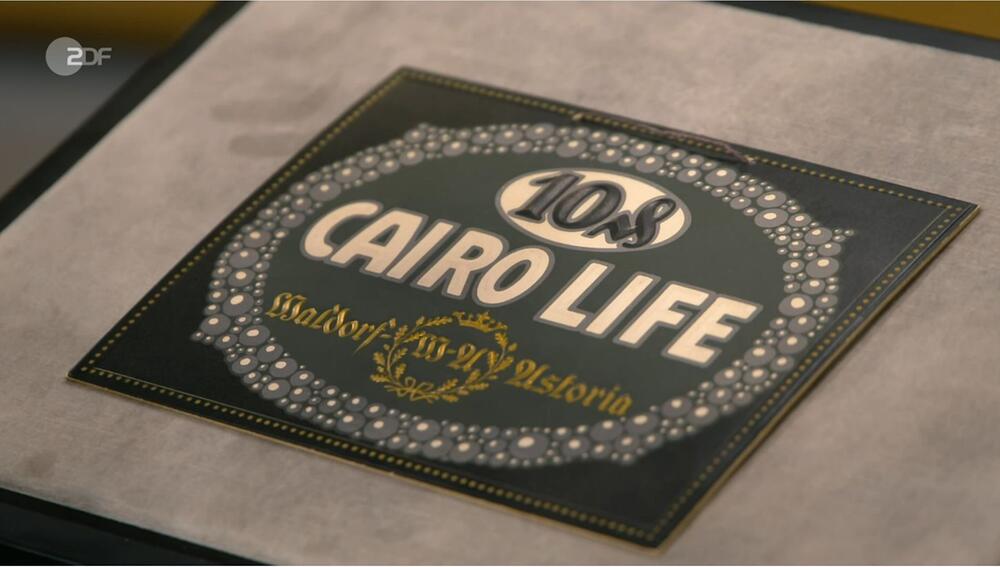 Eines der Plakate macht Werbung für die Zigarettenmarke "Cairo Life". Darüber steht die Zahl zehn mit einem für viele wohl unbekannten Zeichen dahinter. Deutschmanek kann aufklären: "Das ist das alte Pfennigzeichen." Eine Zigarette habe damals zehn Pfennig gekostet, erklärt der Experte.
