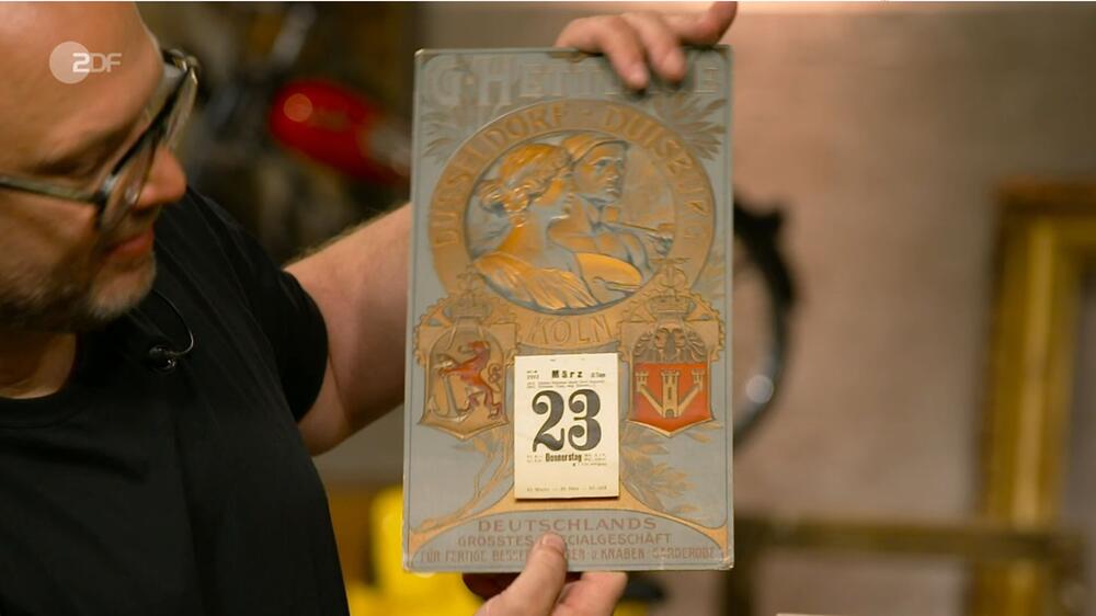 Zwar kann Deutschmanek nicht glauben, dass es tatsächlich Leute gibt, die Kalender sammeln, doch er kann erklären: Dieser Abreisskalender vom Herrenausstatter Hettlage aus Duisburg, Köln und Düsseldorf sei für das Jahr 1911. "Das hätte ich jetzt sogar älter geschätzt", meint Lichter.