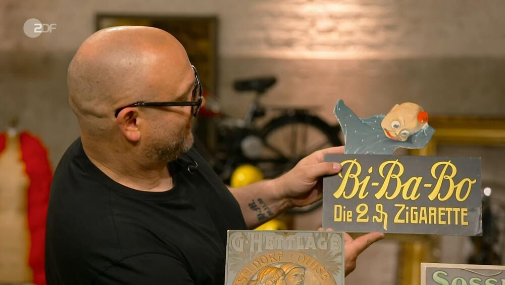 "Hier haben wir was, das kenne ich überhaupt nicht", muss Deutschmanek bei dem Plakat für Bi-Ba-Bo-Zigaretten zugeben. Er lobt: "Das sind wunderschöne, alte, erhaltene Pappschilder." Julia erhofft sich "vielleicht so 20 Euro für jedes Schild". Das kann der Experte toppen: Er schätzt 200 bis 250 Euro für alle Schilder.