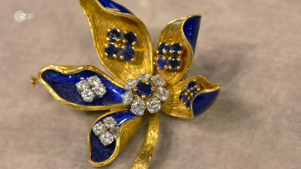 Vom Erlös für ihre Brosche wollen Inge und ihre Enkelin Pia "ein schickes Brautkleid kaufen", verrät Inge. Für das französische Schmuckstück aus den 60er-Jahren aus 750er Gold und mit 1,8 Karat Diamanten und Saphiren besetzt, hoffen die beiden auf 1.500 Euro. Expertin Dr. Heide Rezepa-Zabel taxiert den Wert auf 1.600 bis 1.800 Euro.