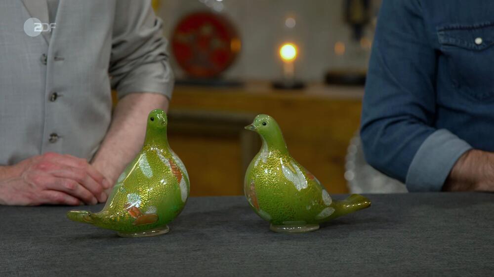 Für die mundgeblasenen Tauben wünschen sich die Verkäufer 500 Euro. Der Experte schätzt den Wert eher auf 350 bis 500 Euro, da der Hersteller nicht eindeutig feststellbar ist. Auch der Entstehungszeitraum lässt sich nur grob eingrenzen - zwischen 1950 und 1970.