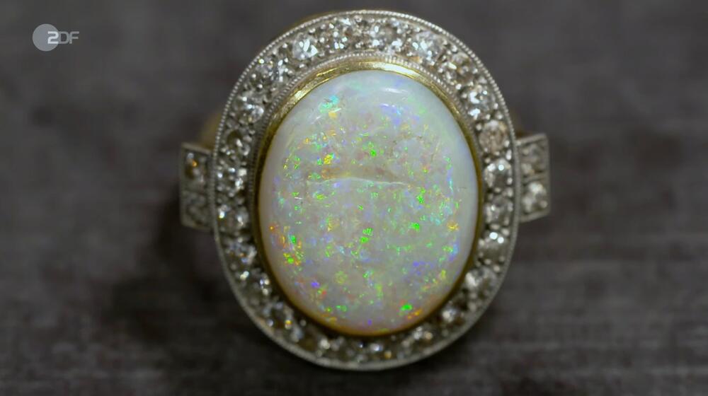 Branka und Peter aus Offenbach am Main haben einen Ring dabei, den die Verkäuferin von ihrer Mutter geerbt hat. Wendela Horz erklärt, dass der Schmuck aus 585er Gold mit Opal und kleinen Diamanten aus den 1950er-Jahren stammt.