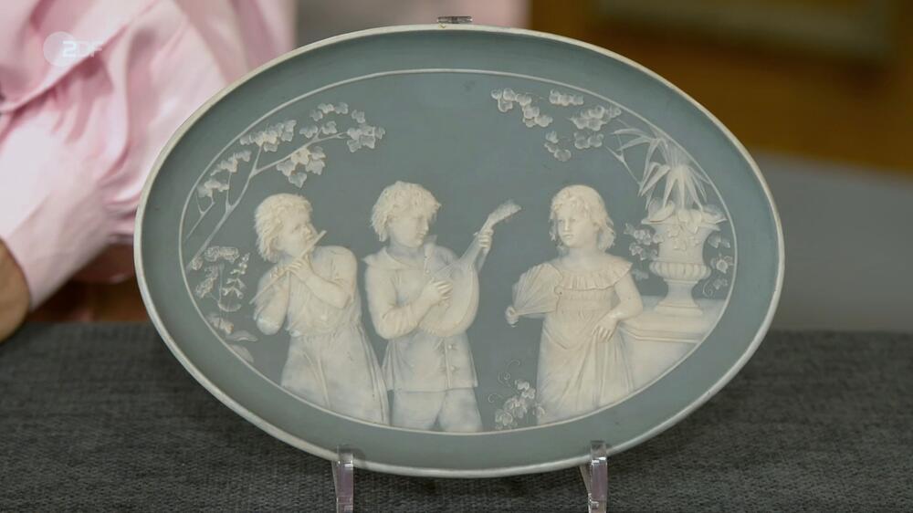 Roswitha und Dieter aus Mönchengladbach wollen einen Teller verkaufen, der schon bei der Grossmutter der Verkäuferin an der Wand hing. Laut Bianca Berding ist der Wandteller aus Steinzeug um 1900 von Villeroy & Boch in Kamee-Technik produziert worden.