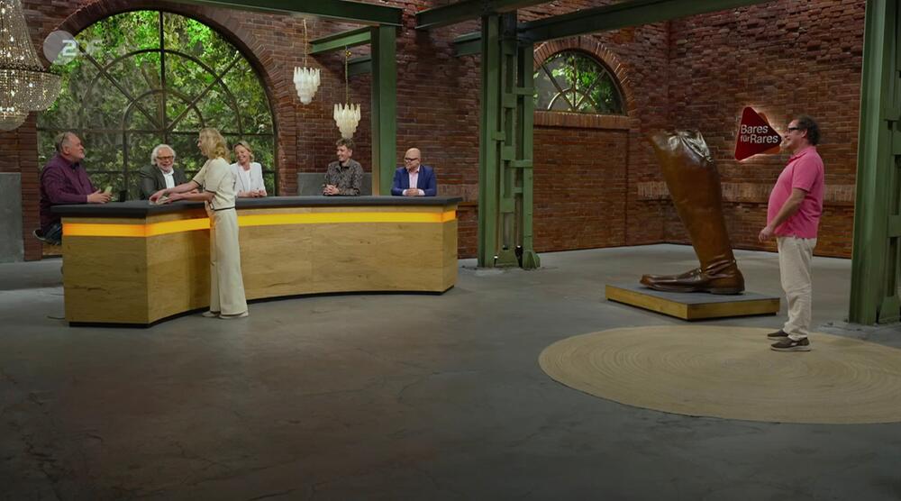 "Mein lieber Scholli, die Sprüche kommen gleich", ruft Horst Lichter, als er in der Mittwochsausgabe der ZDF-Trödelshow "Bares für Rares" den riesigen Stiefel entdeckt. Zum Sprücheklopfen ist das aussergewöhnliche Objekt bestens geeignet - doch welcher Händler will den XXL-Treter am Ende wirklich kaufen?