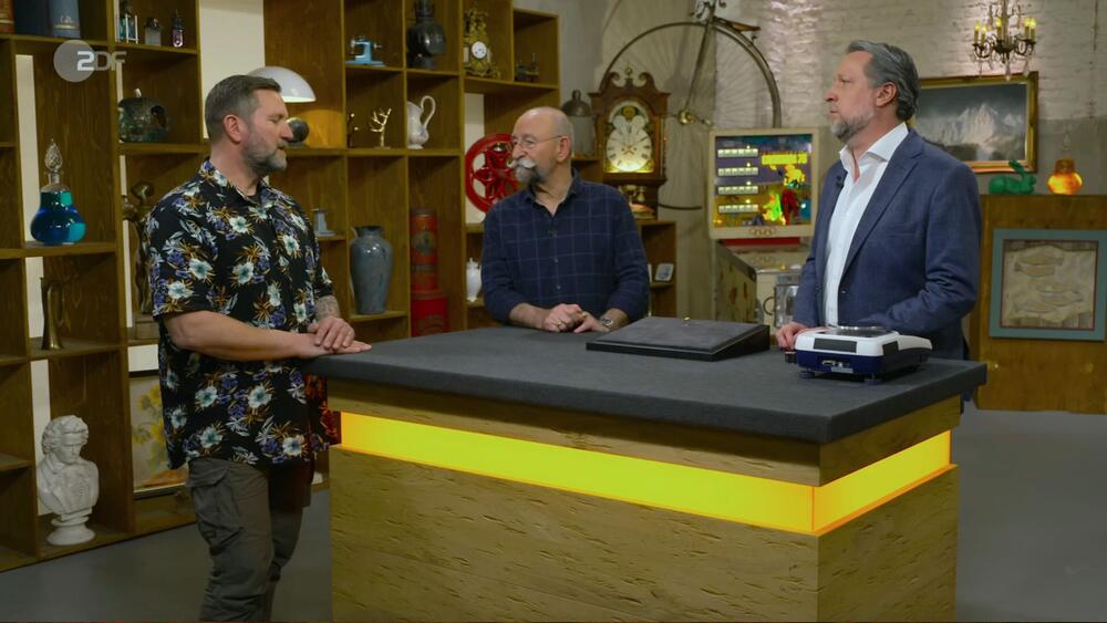 Gewünscht werden dennoch 1.500 bis 2.000 Euro. Und das liegt genau in der Schätzung von Kümmel: "Ich bin ganz bei Ihnen, bis 2.000 Euro ist der Marktwert." Lichter übergibt erleichtert die Händlerkarte und verrät: "Drüben im Händlerraum ist der ein oder andere, der lebt auch auf grossem Fuss." Ein anderer Spruch ist ihm wohl nicht eingefallen.