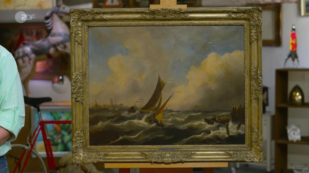 Sebastian aus Niederkassel will ein Gemälde veräussern, das Colmar Schulte-Goltz als Kabinettformat beschreibt. Die Darstellung der stürmischen See mit Segelschiffen ist von dem niederländischen Maler Govert van Emmerik signiert und 1856 entstanden.
