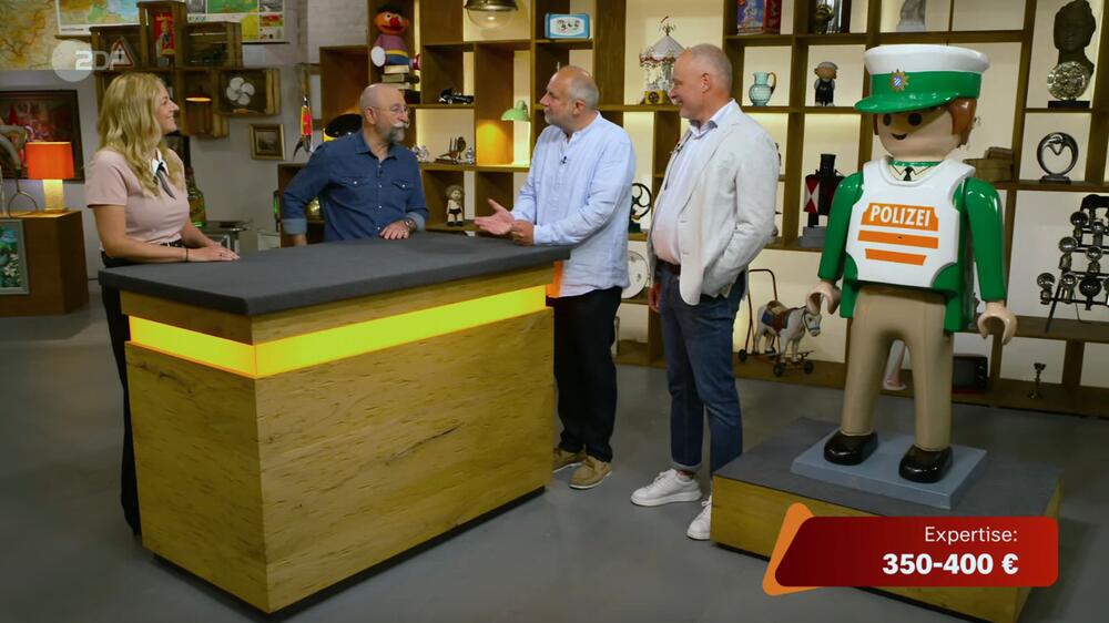 Ein Playmobil-Polizist sorgt für Riesen-Alarm bei "Bares für Rares": Horst Lichter staunt über Blaulicht und Sirene - und die Händler streiten sich über das XXL-Spielzeug: "Ein tolles Gefecht!"